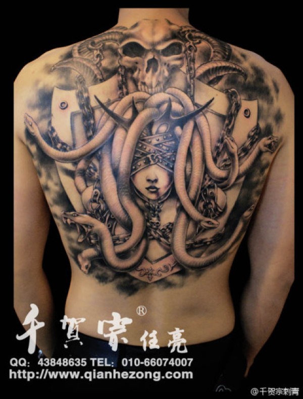 男人后背超酷经典的美杜莎纹身图案_后背纹身图案大全_纹身图吧