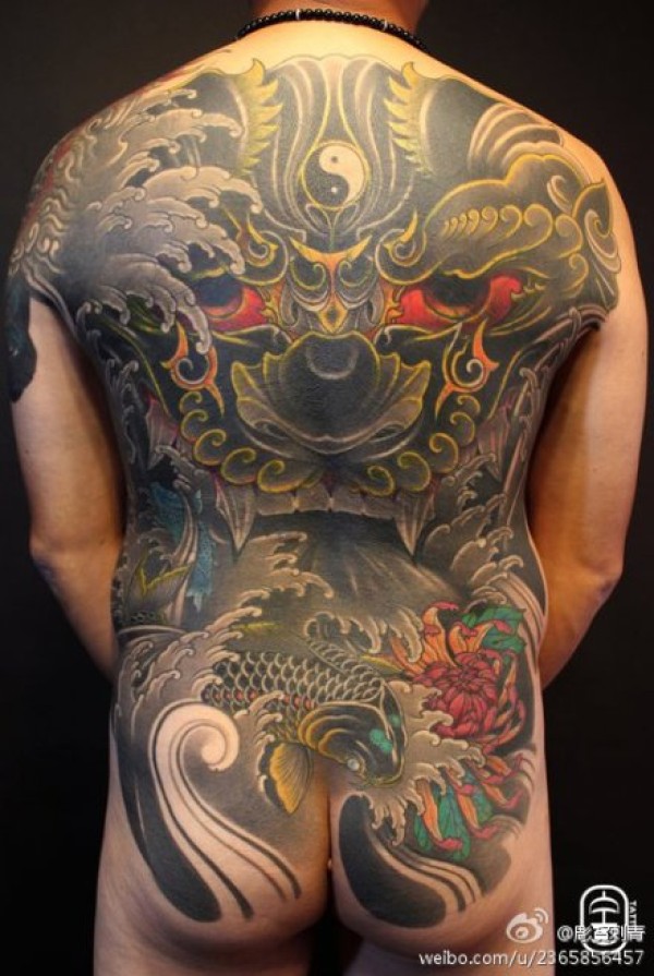 男人后背超霸气的满背唐狮子纹身图案_后背纹身图案大全_纹身图吧