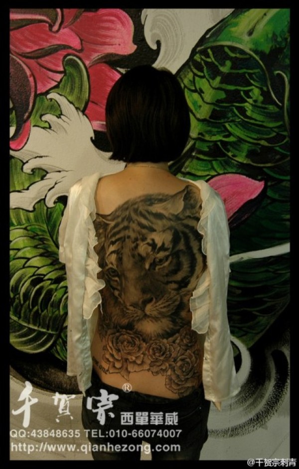美女后背经典潮流的满背虎头纹身图案_后背纹身图案大全_纹身图吧