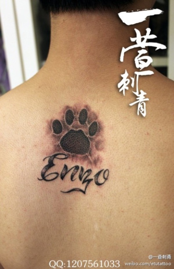 后背时尚小巧的爪印纹身图案_后背纹身图案大全_纹身图吧
