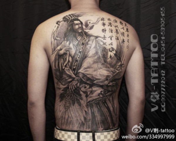 男人后背经典很酷的满背诸葛亮纹身图案_后背纹身图案大全_纹身图吧
