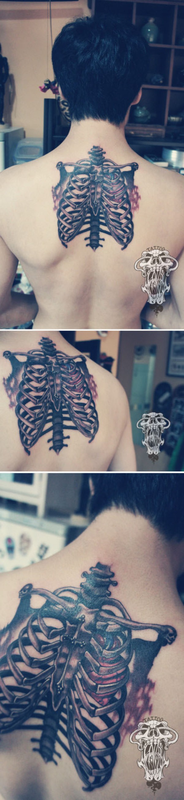 男生后背很酷经典的肋骨骨架纹身图案_后背纹身图案大全_纹身图吧