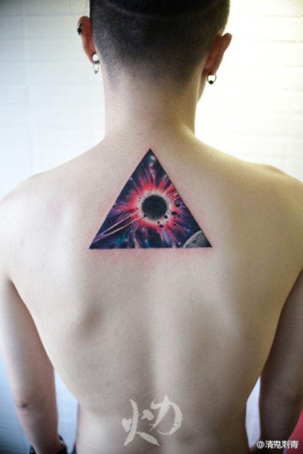 男生后背时尚经典的三角星空纹身图案_后背纹身图案大全_纹身图吧