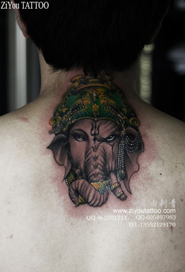 男生后背很酷经典的象神纹身图案_后背纹身图案大全_纹身图吧
