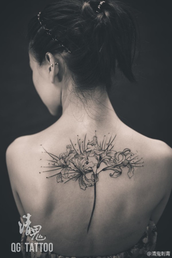 背部彼岸花纹身分享_后背纹身图案大全_纹身图吧