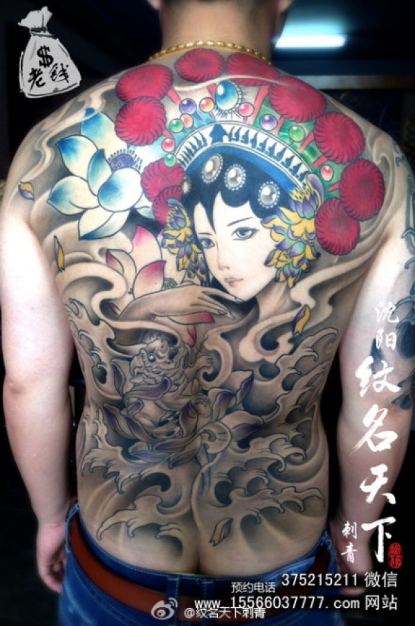 男人后背漂亮的满背花旦纹身图案_后背纹身图案大全_纹身图吧