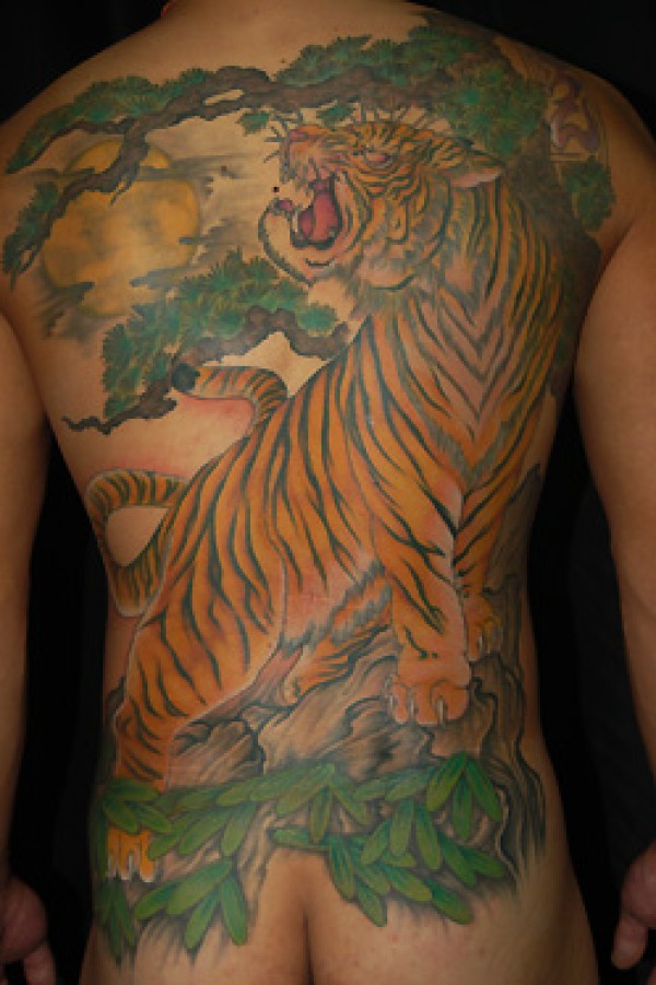 男人后背超酷的满背上山虎纹身图案_后背纹身图案大全_纹身图吧
