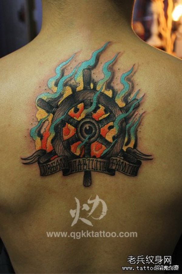 男生后背时尚潮流的船舵纹身图案_后背纹身图案大全_纹身图吧