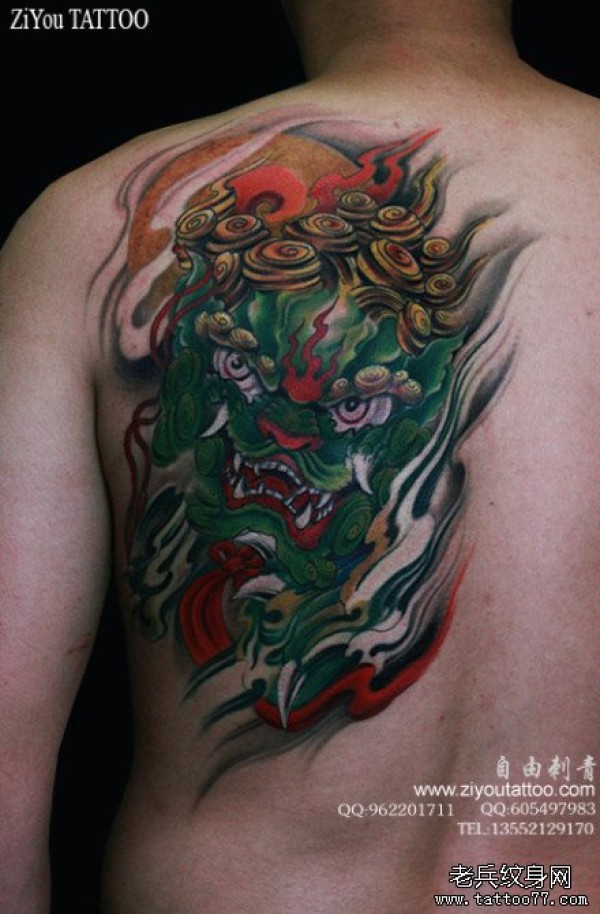 男人后背超帅经典的唐狮子纹身图案_后背纹身图案大全_纹身图吧