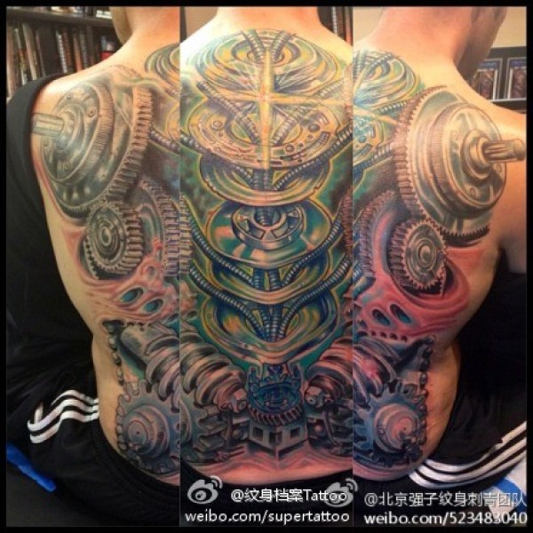 男人后背超酷的满背机械纹身图案_后背纹身图案大全_纹身图吧