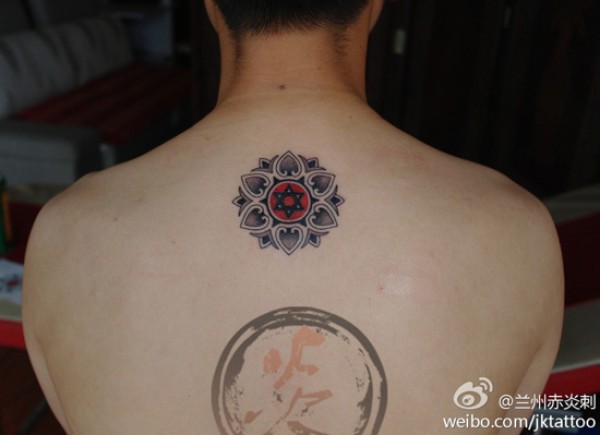 后背经典潮流的抽象莲花纹身图案_后背纹身图案大全_纹身图吧