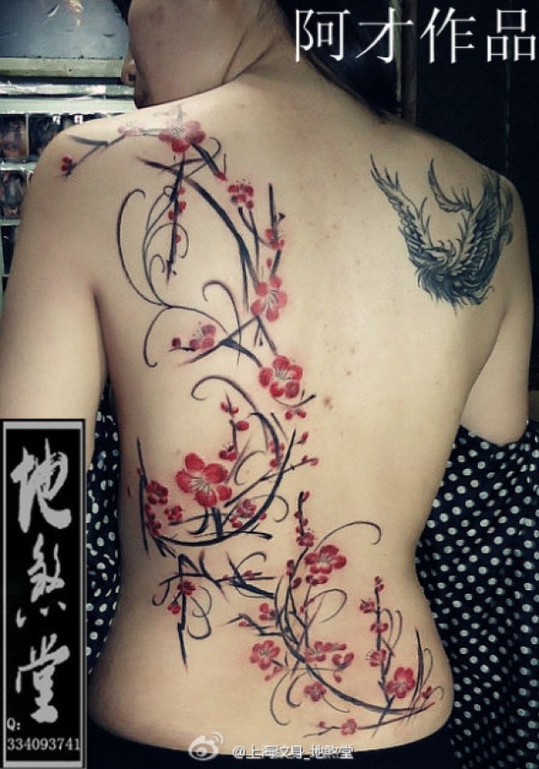 美女后背写意唯美的梅花纹身图案_后背纹身图案大全_纹身图吧