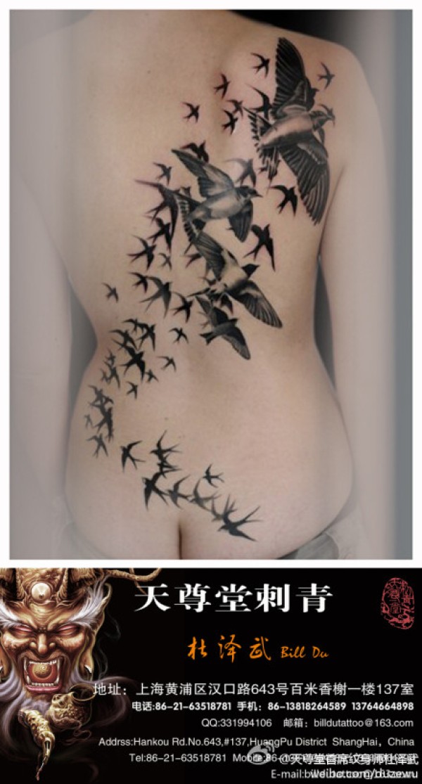 后背时尚经典的燕子纹身图案_后背纹身图案大全_纹身图吧