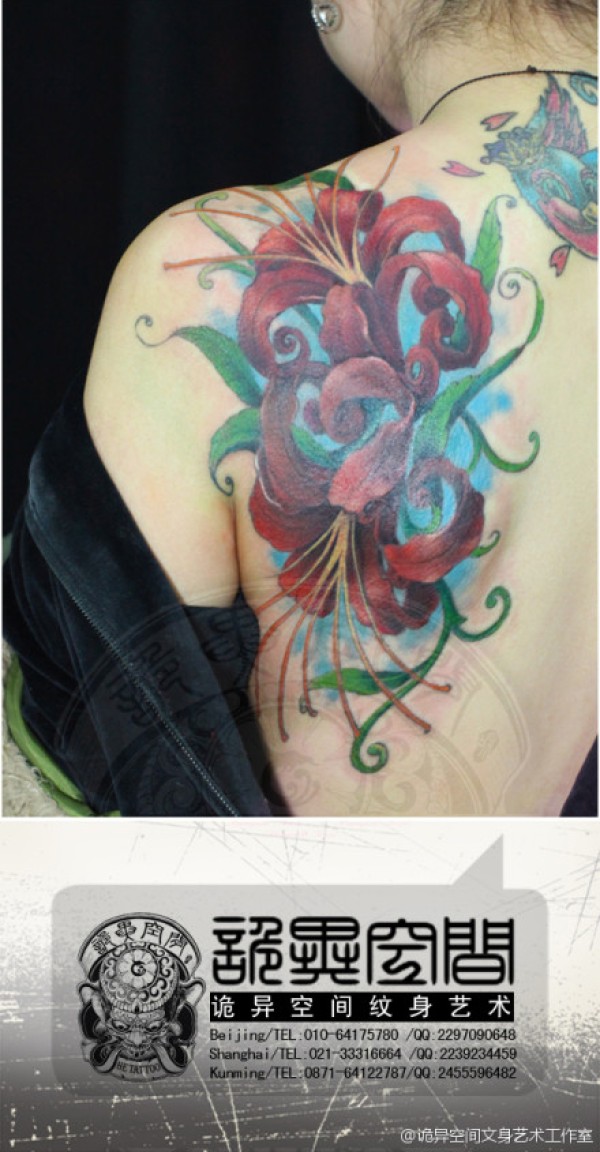 背部彼岸花纹身分享_后背纹身图案大全_纹身图吧