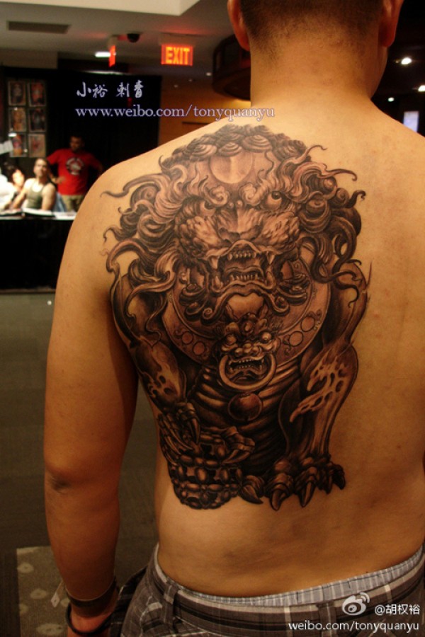 男人后背霸气超酷的石狮子纹身图案_后背纹身图案大全_纹身图吧