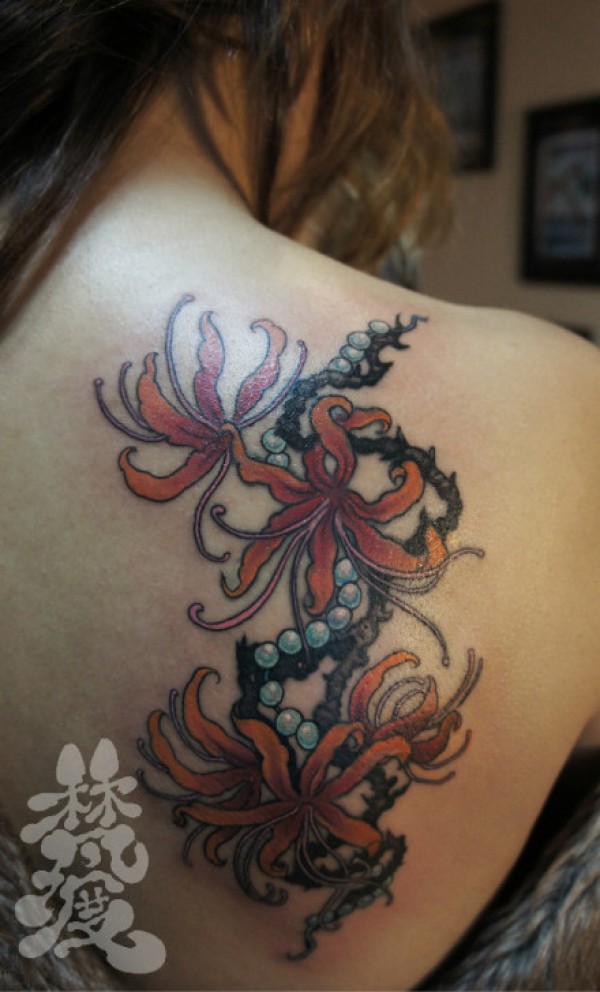 背部彼岸花纹身分享_后背纹身图案大全_纹身图吧