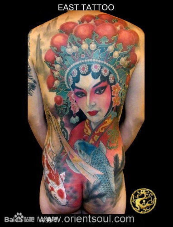 男人背部经典的满背花旦纹身图案_后背纹身图案大全_纹身图吧