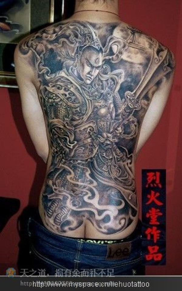 男生满背超酷的满背二郎神纹身图案_后背纹身图案大全_纹身图吧