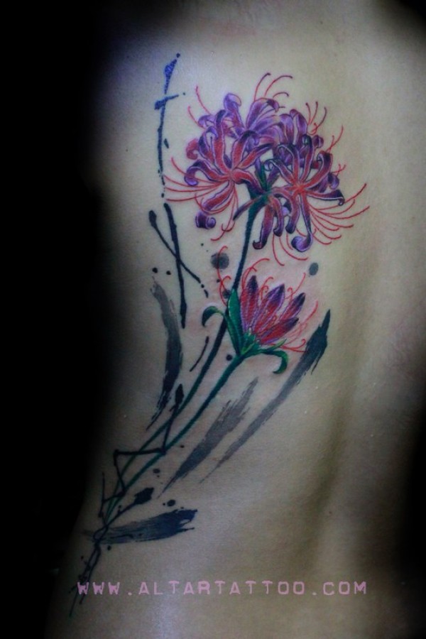 背部彼岸花纹身分享_后背纹身图案大全_纹身图吧