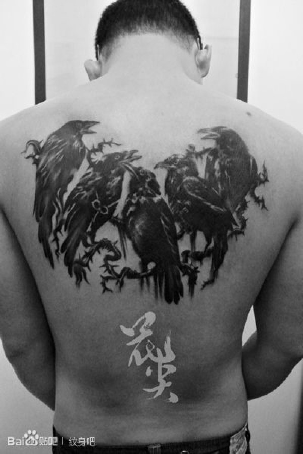 男人背部帅气超酷的乌鸦纹身图案_后背纹身图案大全_纹身图吧