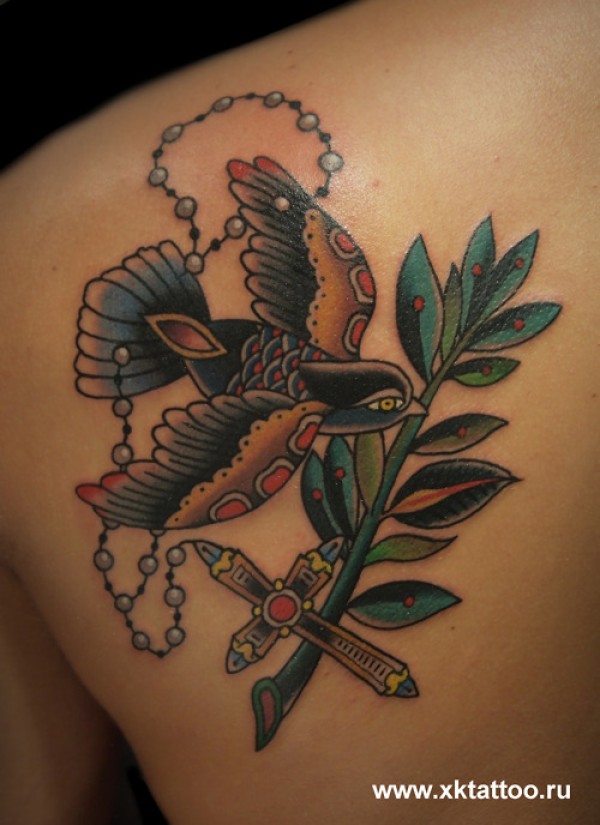 后背时尚流行的小燕子纹身图案_后背纹身图案大全_纹身图吧