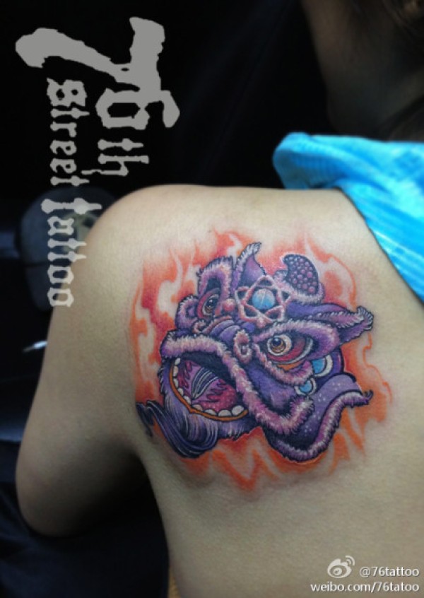 男生后背时尚精美的狮头纹身图案_后背纹身图案大全_纹身图吧