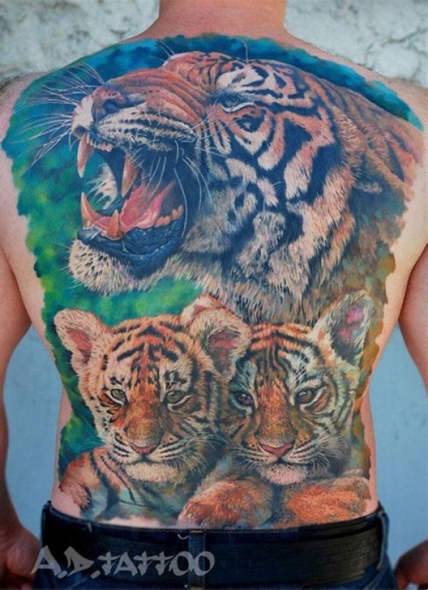 霸气超酷的彩色满背虎头纹身图案_后背纹身图案大全_纹身图吧