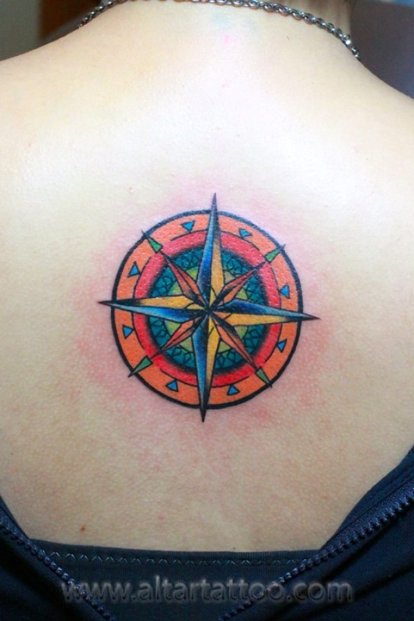 后背精美漂亮的指南针纹身图案_后背纹身图案大全_纹身图吧