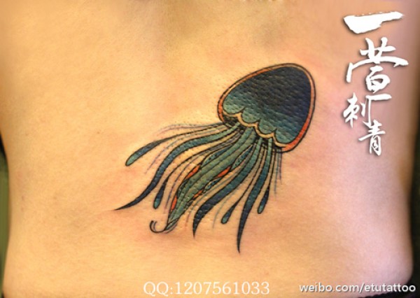 一款背部好看唯美的水母纹身图案_后背纹身图案大全_纹身图吧
