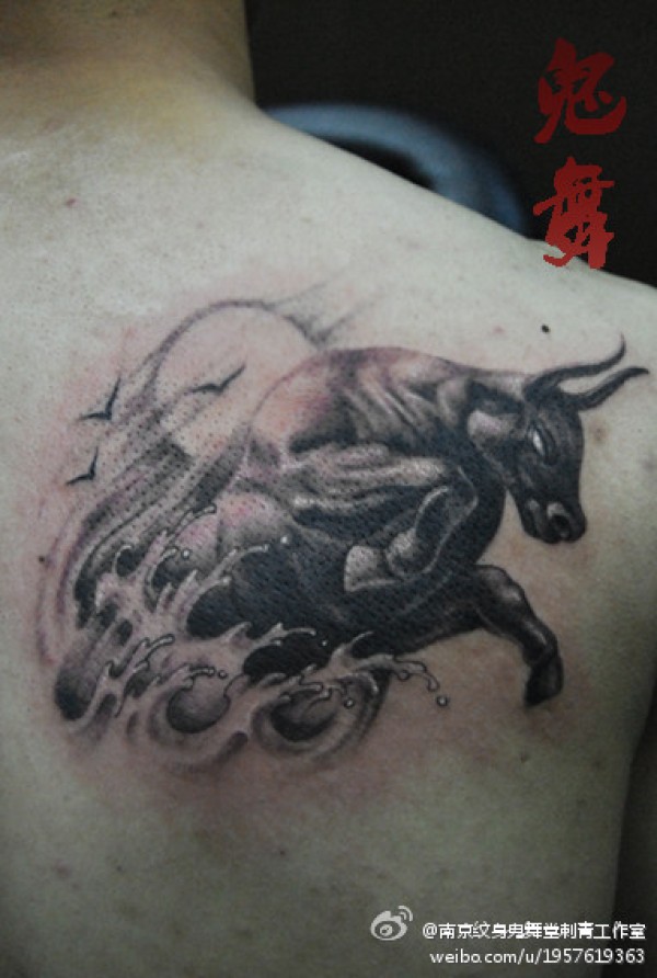 男人背部强壮的公牛纹身图案_后背纹身图案大全_纹身图吧