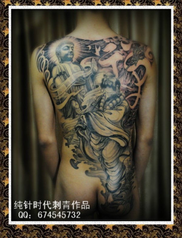 男生背部经典的满背达摩渡江纹身图案_后背纹身图案大全_纹身图吧