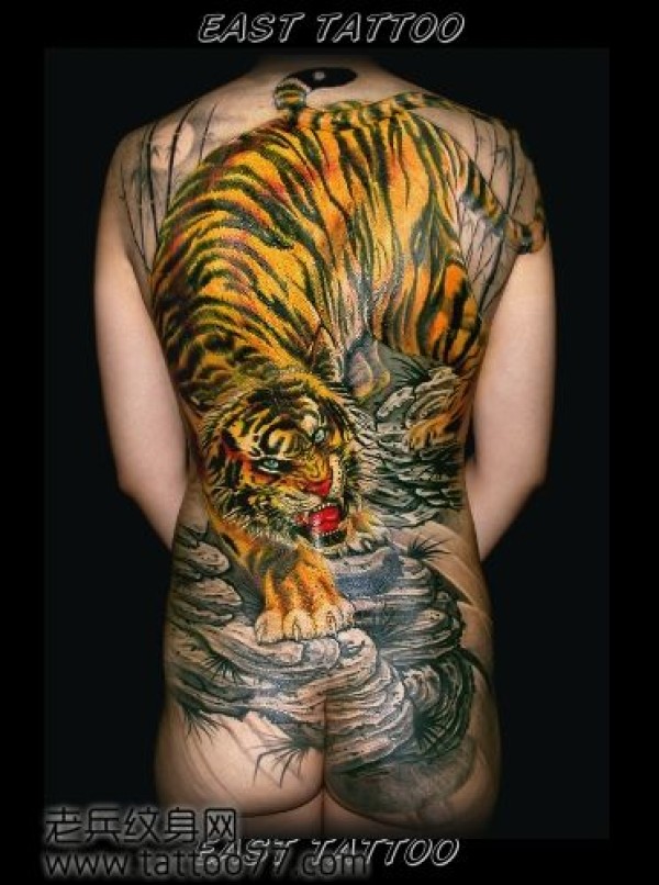 霸气的满背彩色下山虎纹身图案_后背纹身图案大全_纹身图吧