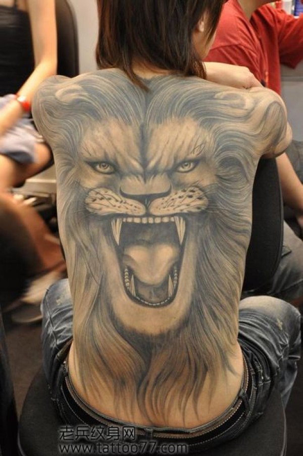 一款霸气的满背狮头纹身图案_后背纹身图案大全_纹身图吧