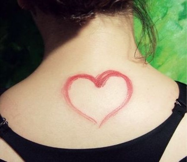 女孩子背部一款彩色水墨画风格爱心纹身图案_后背纹身图案大全_纹身图吧