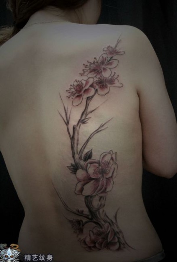 女孩子背部桃花纹身图案_后背纹身图案大全_纹身图吧