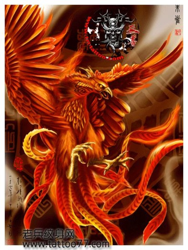 华丽的一款满背朱雀纹身图案_后背纹身图案大全_纹身图吧