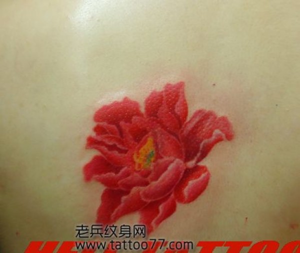 女孩子背部彩色牡丹花纹身图案_后背纹身图案大全_纹身图吧