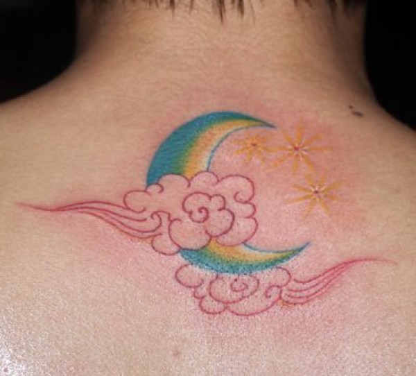 背部彩色月亮星星纹身图案_后背纹身图案大全_纹身图吧