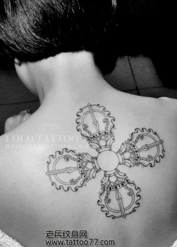 美女背部好看的金刚杵纹身图案_后背纹身图案大全_纹身图吧