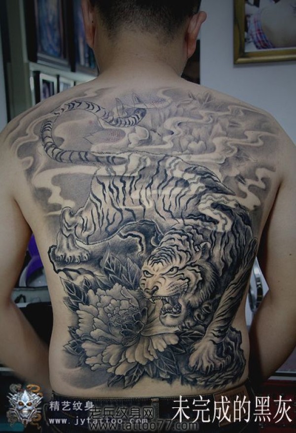 一款男生喜欢的满背老虎纹身图案_后背纹身图案大全_纹身图吧