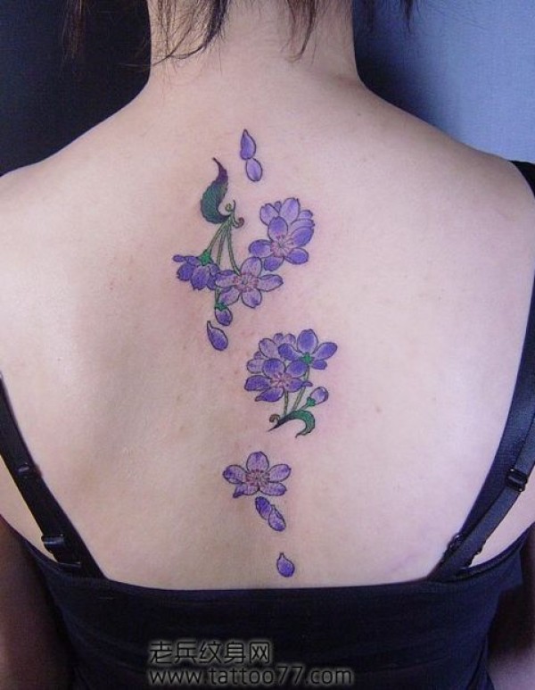 美女背部精美的樱花纹身图案_后背纹身图案大全_纹身图吧