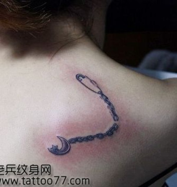 美女背部曲别针吊链纹身图案_后背纹身图案大全_纹身图吧