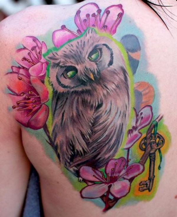 后背猫头鹰梅花纹身图案图片_后背纹身图案大全_纹身图吧