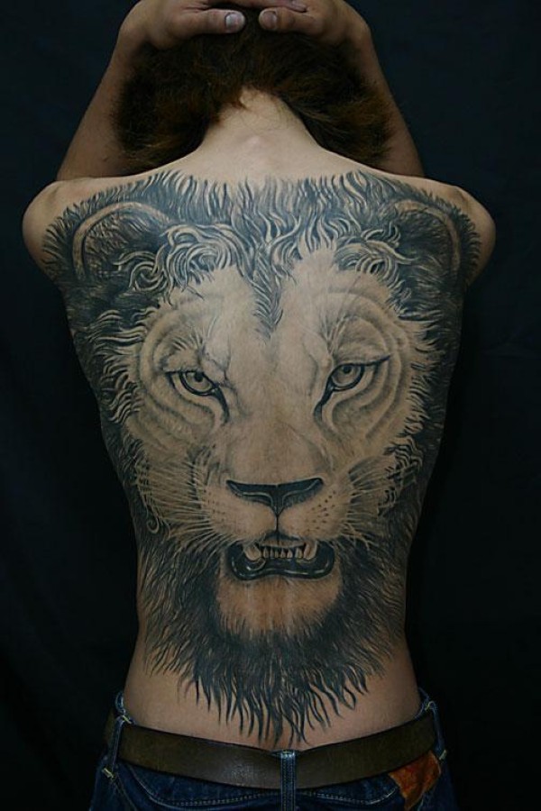 武汉正规文身店满背狮子头纹身图案图片_后背纹身图案大全_纹身图吧