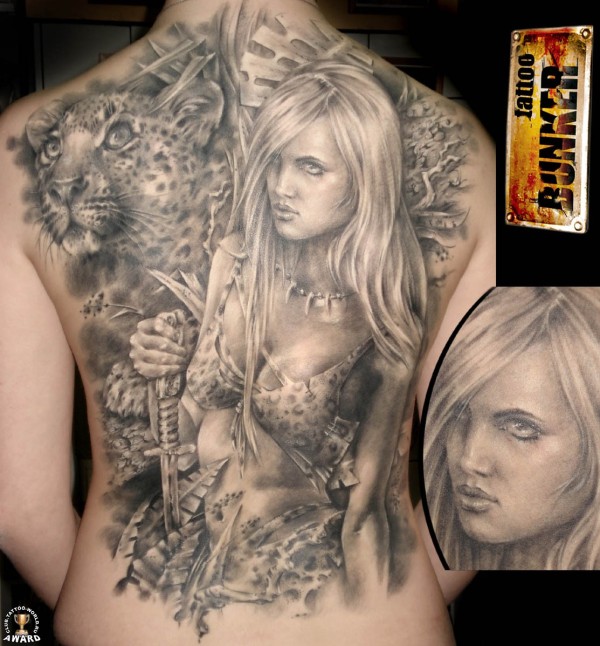 满背纹身图案大全满背美女豹子纹身图案图片_后背纹身图案大全_纹身图吧