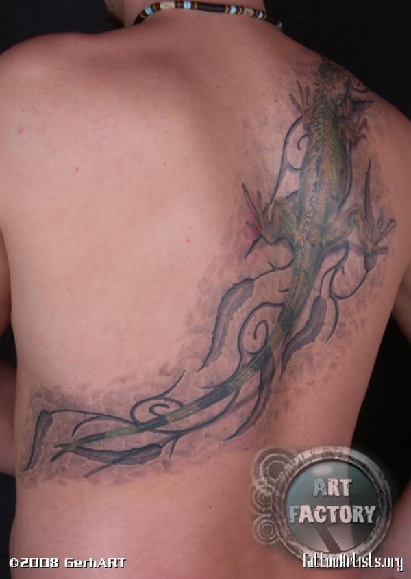 武汉纹身后背烙印藤条蜥蜴纹身图案图片_后背纹身图案大全_纹身图吧