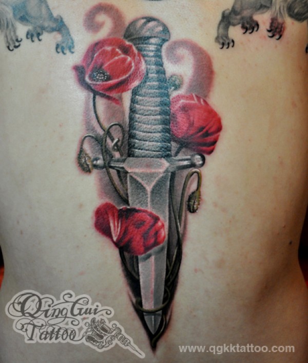 武汉纹身培训后背匕首花纹身图案图片_后背纹身图案大全_纹身图吧