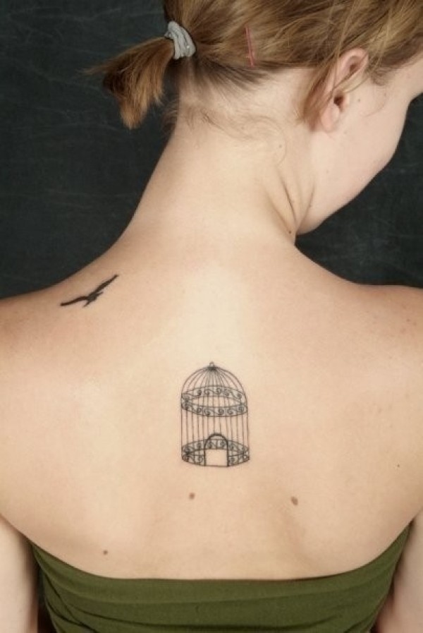 背部鸟笼纹身图案纹身图片_后背纹身图案大全_纹身图吧