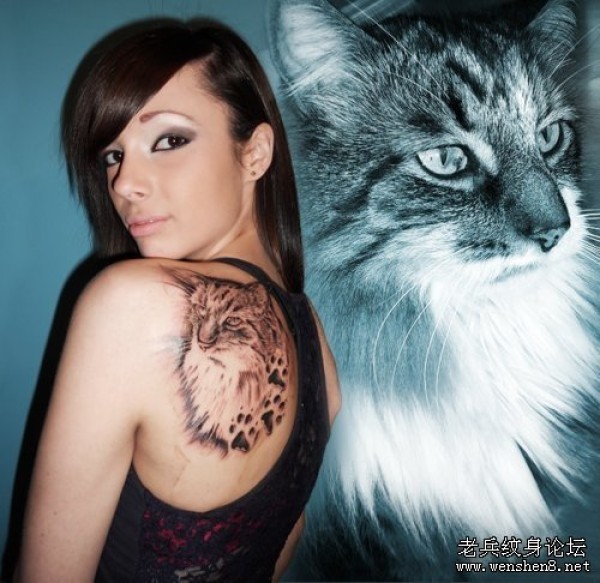 背部猫咪纹身图案纹身图片_后背纹身图案大全_纹身图吧