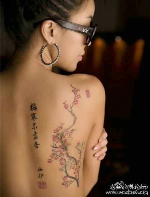 美女背部梅花纹身_后背纹身图案大全_纹身图吧